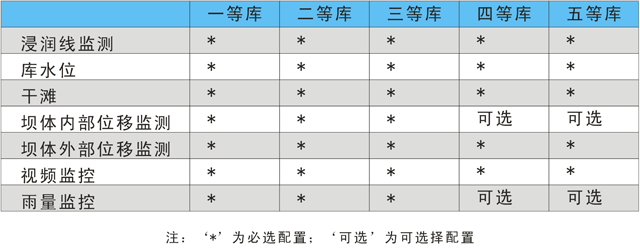 | 根據(jù)《尾礦庫(kù)安全技術(shù)規(guī)程》AQ2006-2005和《尾礦庫(kù)安全監(jiān)測(cè)規(guī)范》AQ2030-2010中對(duì)尾礦庫(kù)的相關(guān)要求,各個(gè)等級(jí)的尾礦庫(kù)監(jiān)測(cè)內(nèi)容如下表: | |