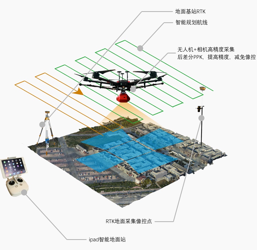 傾斜攝影測(cè)量技術(shù)以大范圍、高精度、高清晰的方式全面感知復(fù)雜場(chǎng)景,通過(guò)高效的數(shù)據(jù)采集設(shè)備及專(zhuān)業(yè)的數(shù)據(jù)處理流程生成的數(shù)據(jù)成果直觀反映地物的外觀、位置、高度等屬性,為真實(shí)效果和測(cè)繪級(jí)精度提供保證。同時(shí)有效提升模型的生產(chǎn)效率,采用人工建模方式一兩年才能完成的一個(gè)中小城市建模工作,通過(guò)傾斜攝影建模方式只需要三至五個(gè)月時(shí)間即可完成,大大降低了三維模型數(shù)據(jù)采集的經(jīng)濟(jì)代價(jià)和時(shí)間代價(jià)。目前,國(guó)內(nèi)外已廣泛開(kāi)展傾斜攝影測(cè)量技術(shù)的應(yīng)用,傾斜攝影建模數(shù)據(jù)也逐漸成為城市空間數(shù)據(jù)框架的重要內(nèi)容。