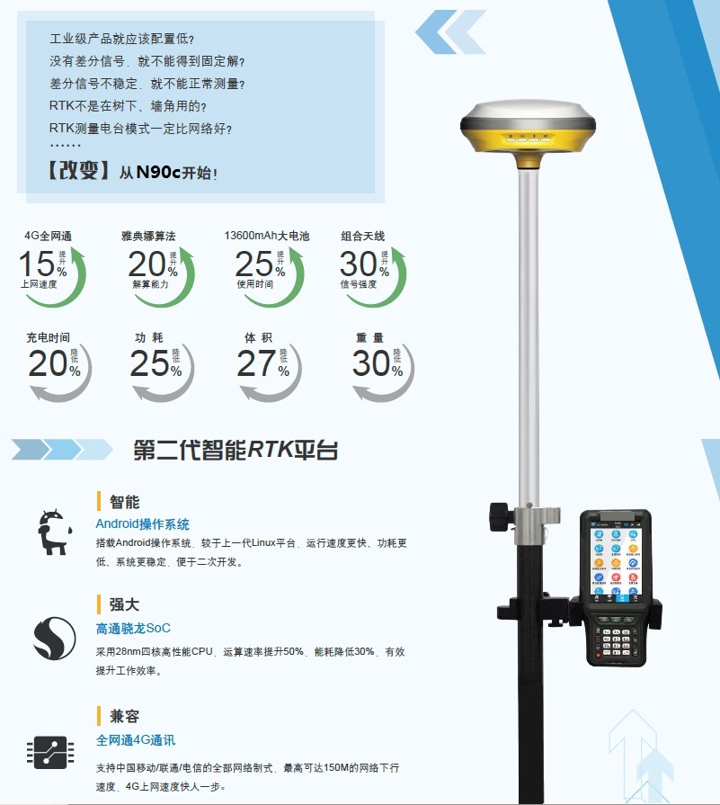 賓測N90C 領(lǐng)先的GNSS板卡,全面支持第四代GNSS定位技術(shù),全新一代Athena RTK引擎,保障高效作業(yè)。