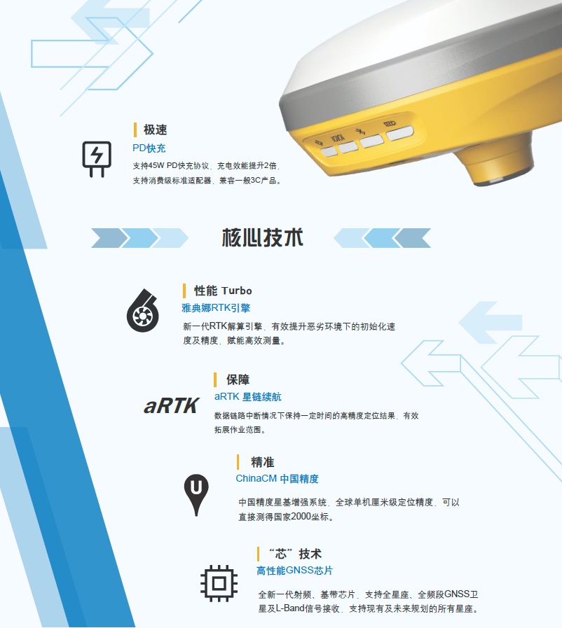 新型組合天線,GNSS、WiFi、藍(lán)牙、4G集為一體,無線信號更好,GNSS衛(wèi)星信噪比平均提升2DB,復(fù)雜環(huán)境下的RTK性能更為出眾。