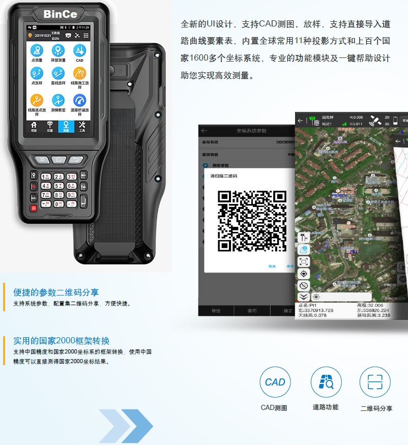 全新的UI設(shè)計(jì),支持全球常用11種投影方式,支持直接選擇dxf底圖要素編輯放樣,新增導(dǎo)入道路直曲表文件,土方計(jì)算,幫助等功能模塊。