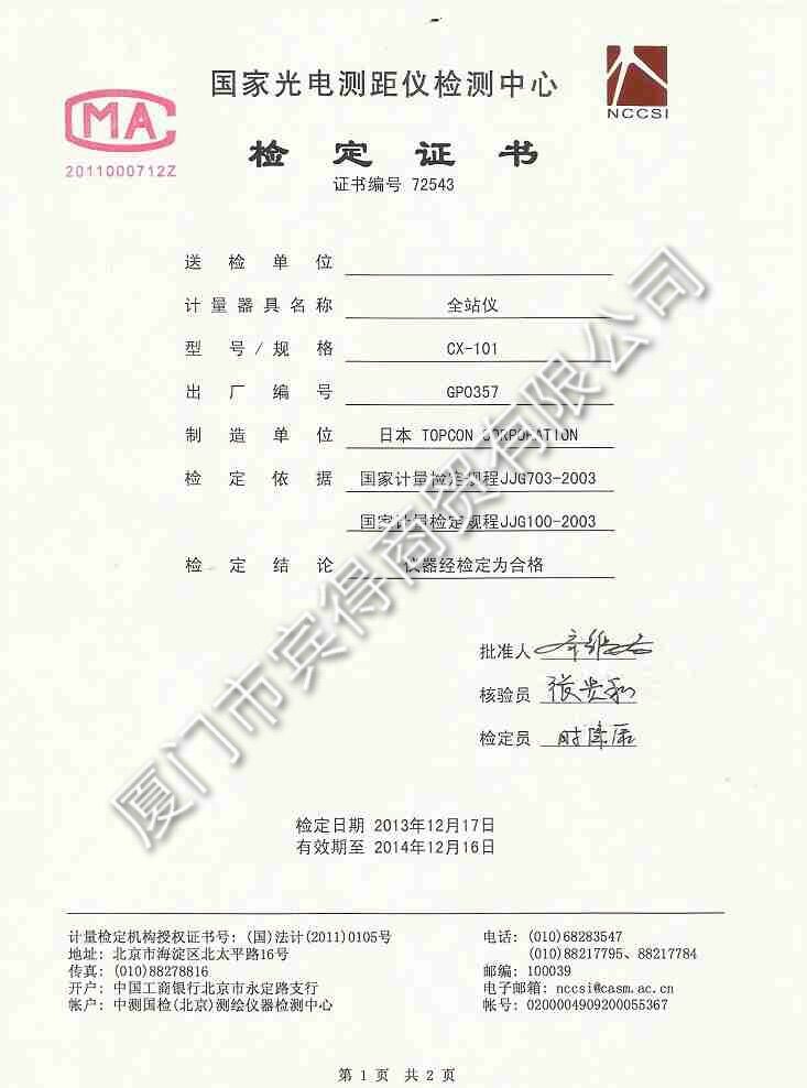 我公司對(duì)全站儀、經(jīng)緯儀、水準(zhǔn)儀進(jìn)行校準(zhǔn),并可出具校準(zhǔn)合格證書(shū),收費(fèi)情況可來(lái)電咨詢(xún)。